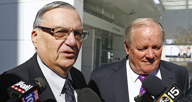 The charges against Arpaio stem from a civil rights suit demanding he cease “racial profiling” in his Maricopa County Sheriff’s Office’s immigration enforcement operations. After a federal judge issued an order demanding certain practices, Arpaio was charged with contempt for continuing to try to enforce the law as he saw fit.