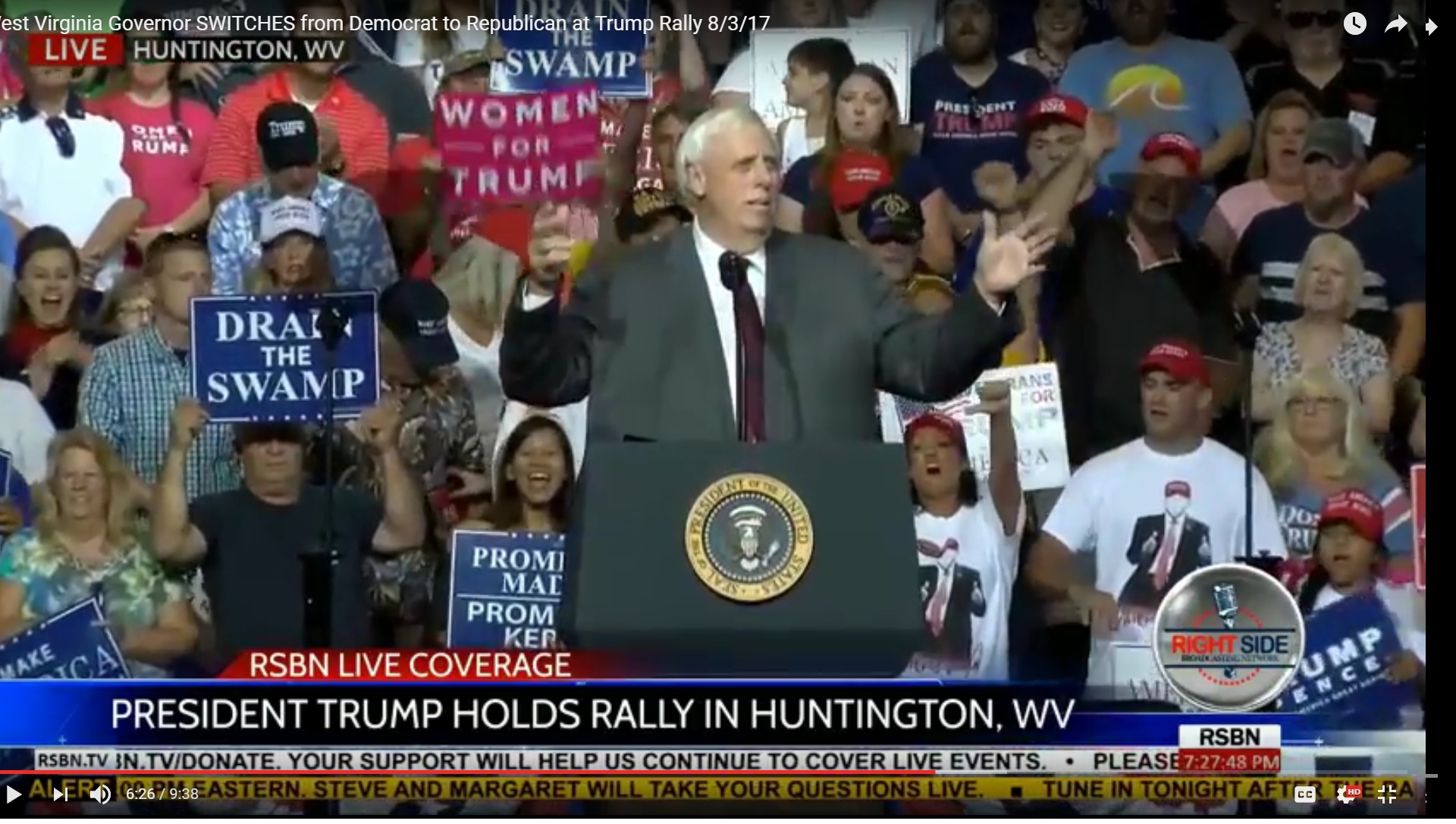 Watch West Virginia Governor Jim Justice in the video, below announce his switch to the Republican Party during a Trump Rally in Huntington, West Virginia.