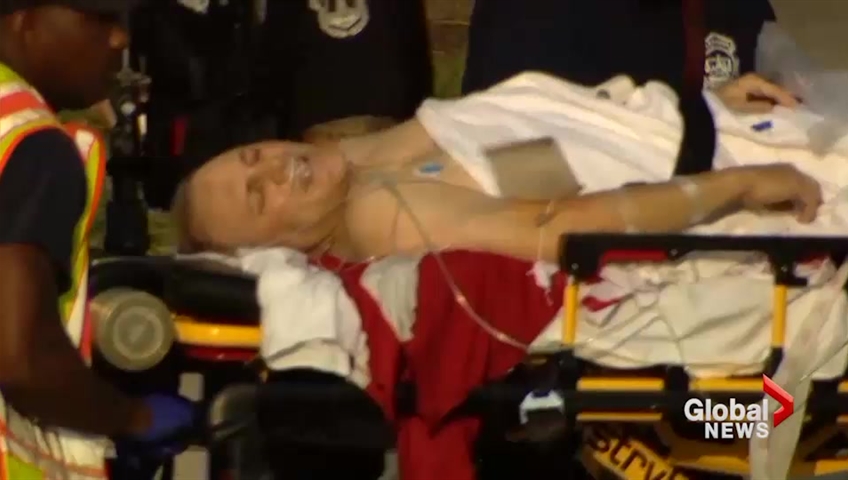 While President Trump stood and sang the national anthem, a message projected onto the exterior of the stadium read, “F**K TRUMP”