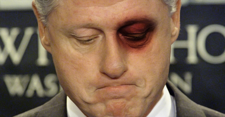 Hitlery hurled a vase across a White House room, giving Slick Willie "a shiner, a real, live, put-a-steak-on-it black eye."