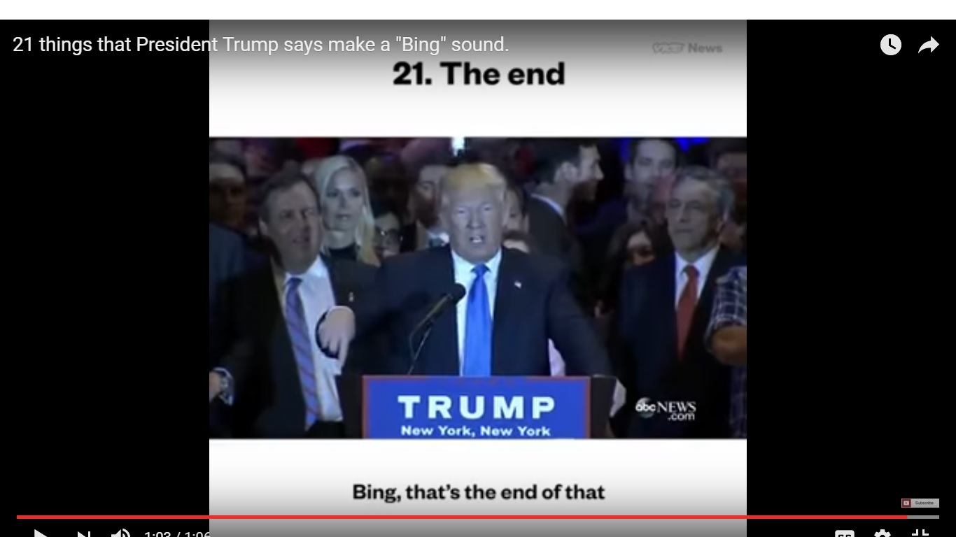 Watch this compilation of 21 bing moments from The Donald. "Bing, that's the end of that. You know, it's the…