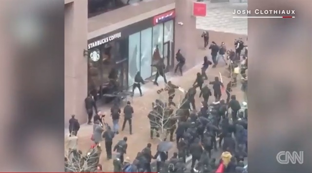 Violence at Trump inauguration: Crybaby snowflakes smashing windows, throwing rocks at cops