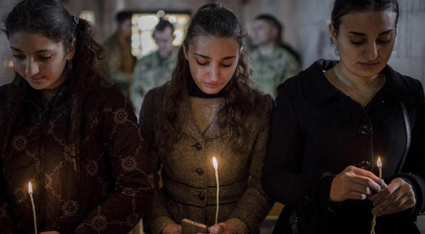 Returning home for the first time in over two years, Iraqi Christians celebrate Christmas Mass with US soldiers in newly-liberated Bartella