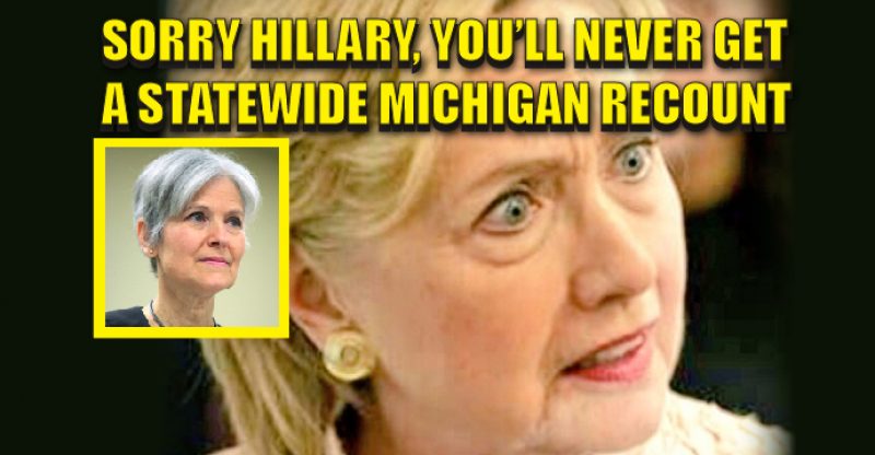 BREAKING! Jill Stein’s exercise in stupidity is foundering. Michigan AG asking state Supreme Court to halt the recount “before it begins”
