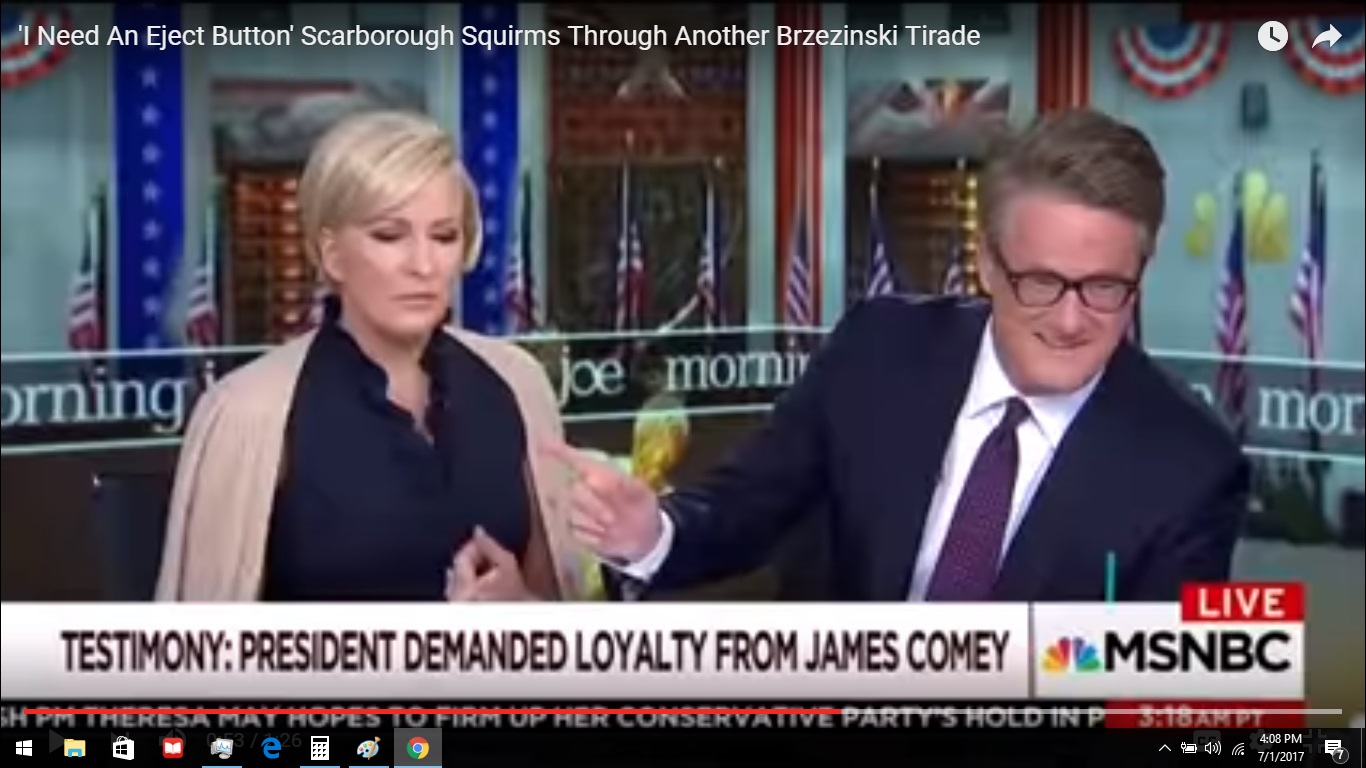 Mind-blowing!!!! Just when I think I have the world figured out, I find this sane anomaly on MSNBC, a network with 17 viewers, all so far left that Karl Marx worships THEM. Enter Joe Scarborough, a former Florida Republican congressman who appears to be the one that Fox let get away. On purpose I don't watch MSNBC. I have that channel blocked on my remote, lest I accidentally wind up there and see Rachel Maddow, requiring an immediate Clorox eyeball irrigation. With not one, but two American flags flying proudly over his shoulder, just to piss off MSNBC's 17 Bolshevist viewers, "Say-it-ain't-so" Joe regularly rips his commie guests a new exhaust port. So, are the MSNBC hiring authorities schizophrenic, or is Joe just a straight man for the MSNBC Marxist du jour? I don't know, but it's refreshing. At my age, to realize that I do not, in fact, have the whole world figured out is a motivator to go on another day, to see what other surprises there are. Enjoy a couple clips of Joe Scarborough, a fish out of water if I ever saw one….