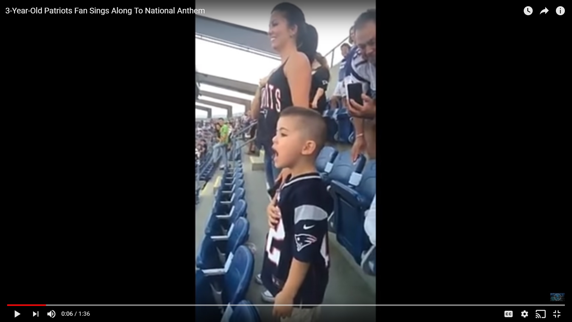 Feel good video of the week. Watch this young patriot sing the Star-Spangled Banner with all his tiny heart