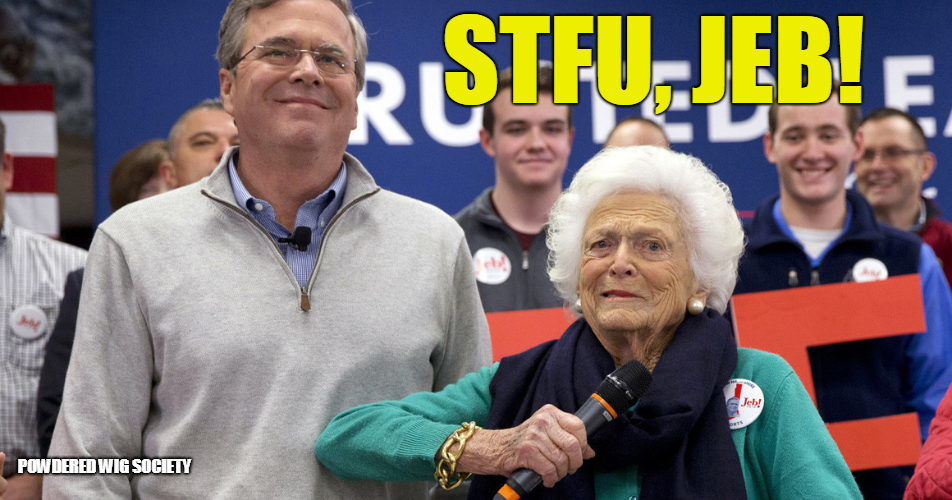 Still playing the bitter loser during a speaking engagement at Yale University, Jeb Bush declared from the start of his…
